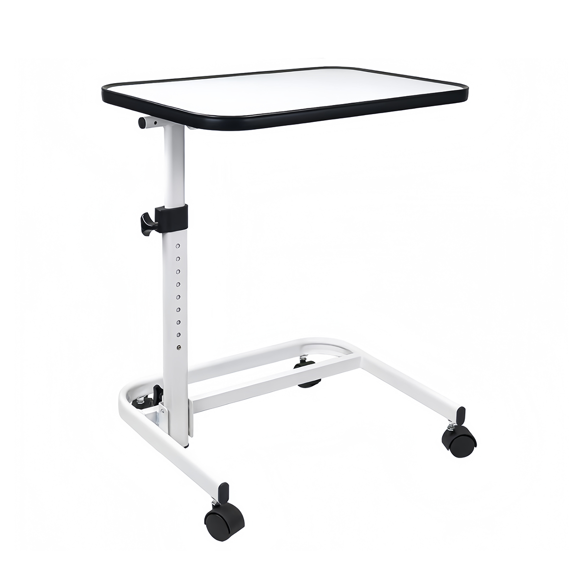 - Built To Last – Durable, welded steel base is designed for use as a hospital bed table and is light enough for easy movement and use at home.The sturdy tabletop is constructed from a durable wood laminate with a slight lip around the perimeter to prevent items from sliding off.